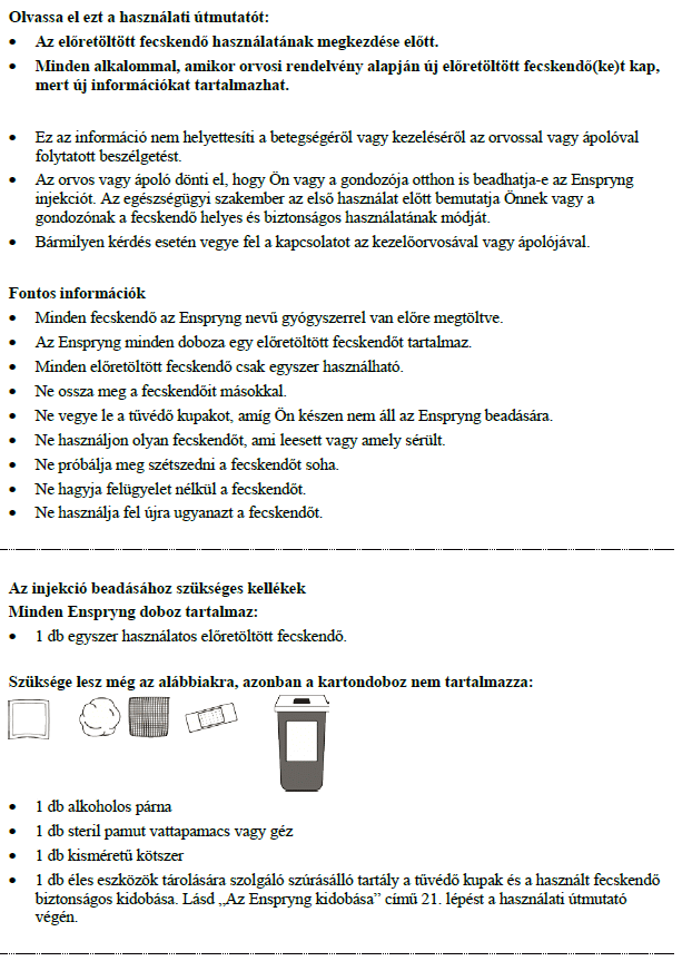Olvassa el figyelmesen és kövesse a Betegtájékoztató végén található "Használati útmutató"-t az Enspryng beadásáról.
