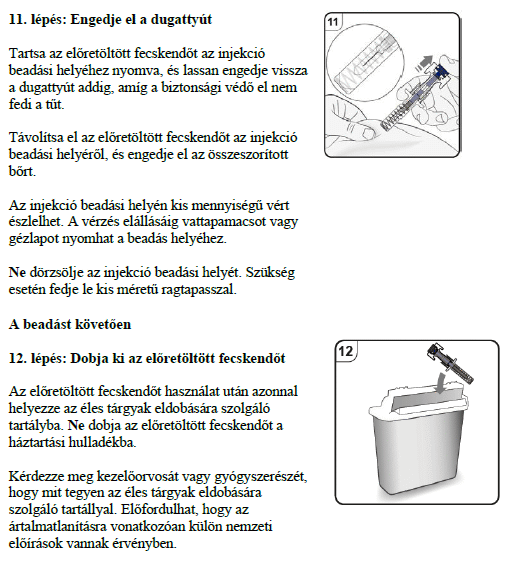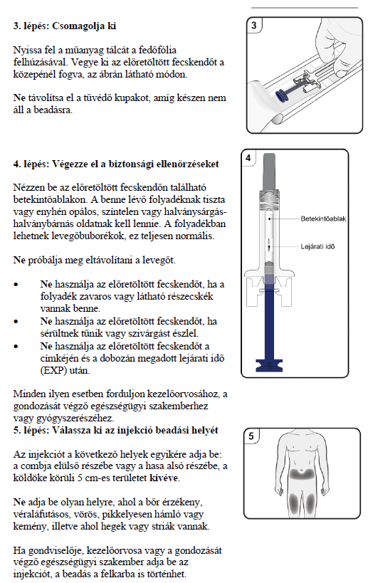 (legfeljebb 25 °C-ra) melegedni a beadás előtt. Így az injekció beadása kevésbé lesz kellemetlen. Ha a fecskendő egyszer szobahőmérsékletűre melegedett (legfeljebb 25 °C), akkor azt 30 napon belül fel kell használni. Részletes információ a betegtájékoztató végén található "Használati utasítás" című 7. részben olvasható.