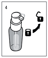 Zárt állapotban ne nyomja le a pumpás adagoló fejét! Az oldatot csak nyitott állapotban lehet adagolni. Kinyitáshoz mindaddig fordítsa a pumpás adagoló fejét a nyíl irányába, amíg már nem tudja tovább csavarni (megközelítőleg egynyolcad fordulatig, 4.ábra). A pumpás adagoló így készen áll az alkalmazására.