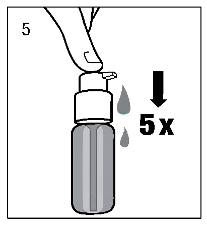 A pumpás adagoló az első használatkor még nem a megfelelő mennyiségű belsőleges oldatot fogja adagolni. Ezért a pumpát elő kell készíteni (fel kell tölteni) a pumpás adagoló egymásutáni ötszöri lenyomásával (5.ábra).