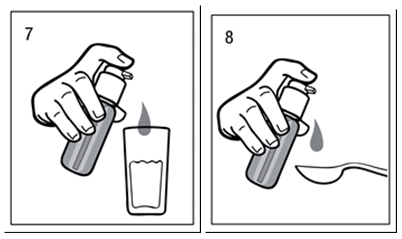 Az oldatot nem szabad közvetlenül az üvegből vagy a pumpából a szájba önteni vagy pumpálni. A pumpa segítségével adagolja egy kanálba vagy egy pohár vízbe. Vegye le az üveg csavaros kupakját: