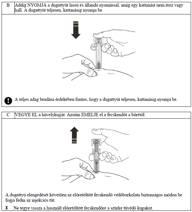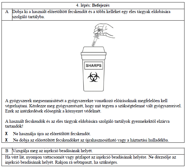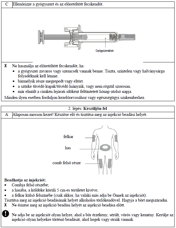 Előretöltött fecskendőjét a hűtőszekrényből kivéve hagyhatja szobahőmérsékletre (legfeljebb 25 °C- ra) melegedni a beadás előtt. Így az injekció beadása kevésbé lesz kellemetlen. Ha a fecskendő egyszer szobahőmérsékletűre melegedett (legfeljebb 25 °C), akkor azt 30 napon belül fel kell használni.