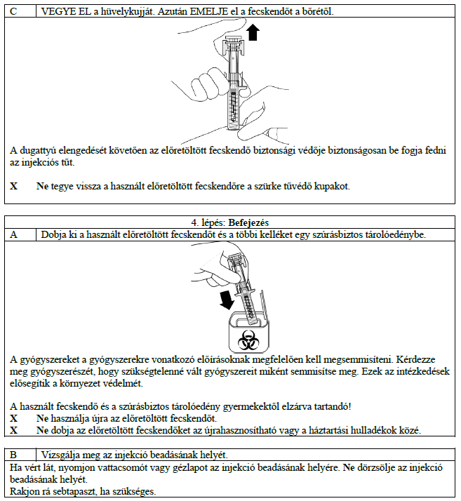 A csomagolás egy darab tűvédővel ellátott, előretöltött fecskendőt tartalmaz.
