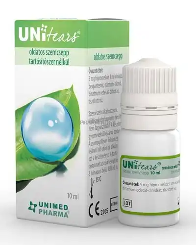 Az UNItears tartósítószer nélkül egy epitelizációs és nedvesítő hatású készítmény. A hipromellóz a szaruhártya és a kötőhártya felületén ideiglenes védőréteget képez, ami által nedvesen tartja a szem külső felületét, és pótolja a nem megfelelő mennyiségben termelődő könnyet. Nyugtatólag hat a nem fertőzés okozta enyhébb szemirritáció esetén. Megszünteti a szemszáraz-ság érzetét. A B-vitaminok közé tartozó dexpantenol hozzájárul a sejtek gyors regenerálódásához a szaruhártya felületén (epitelizáció).