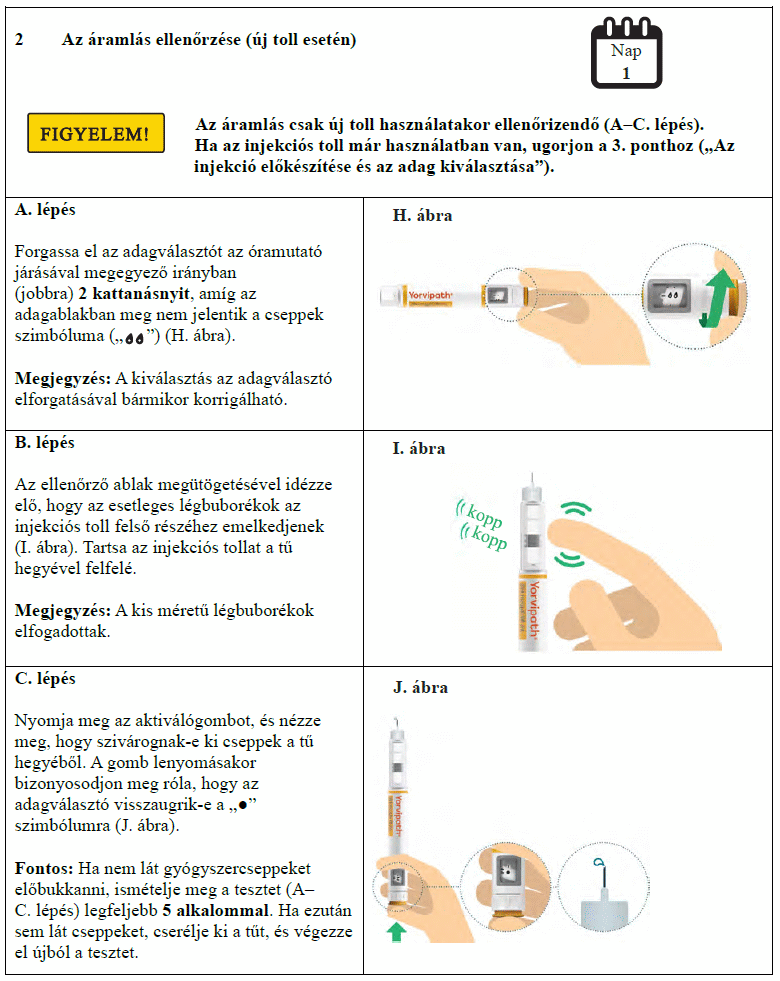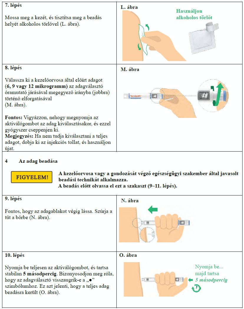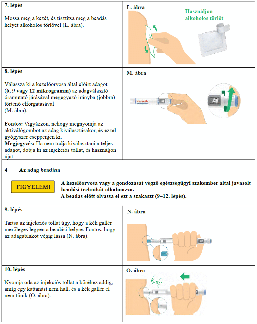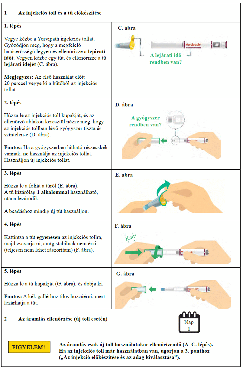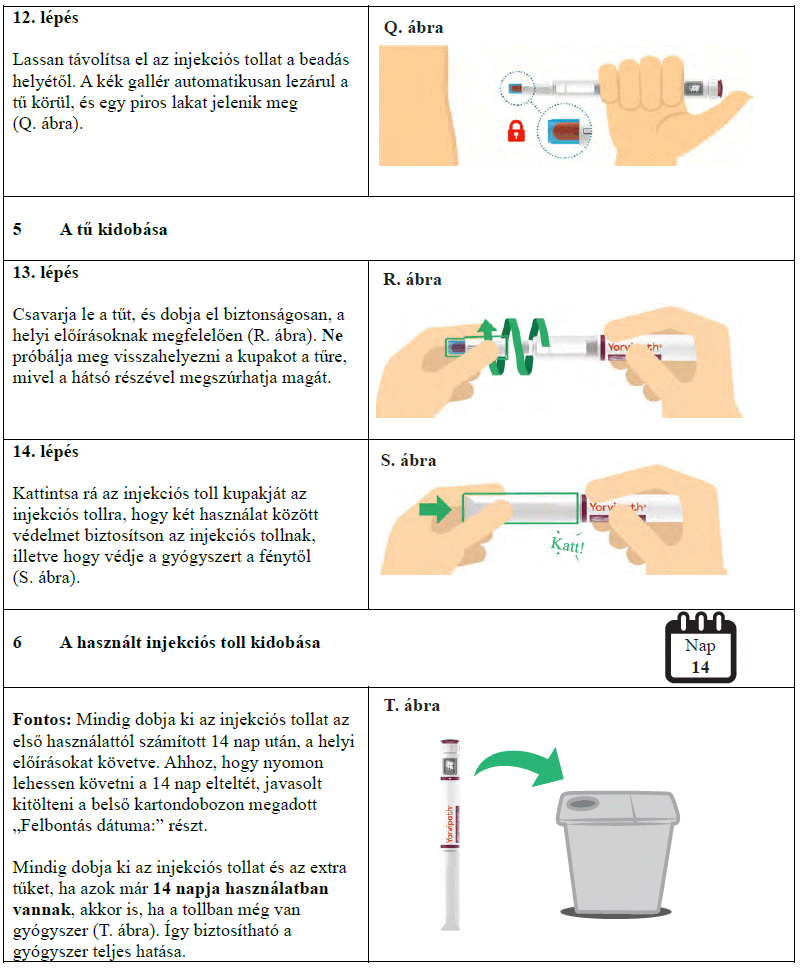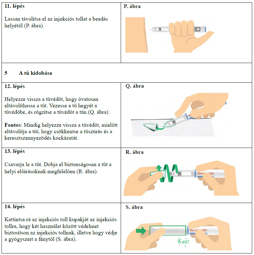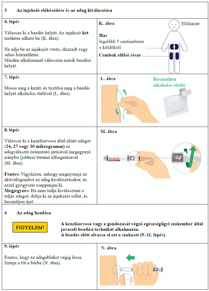 Az injekciós toll első használata előtt kezelőorvosa, gyógyszerésze vagy a gondozását végző egészségügyi szakember megmutatja, hogyan kell befecskendezni a Yorvipath-t. A Yorvipath alkalmazásával kapcsolatban további segítséget a jelen betegtájékoztató végén található használati utasítás ad.