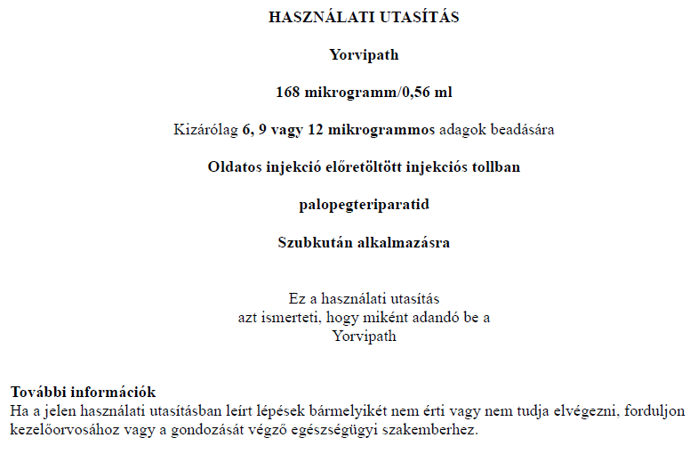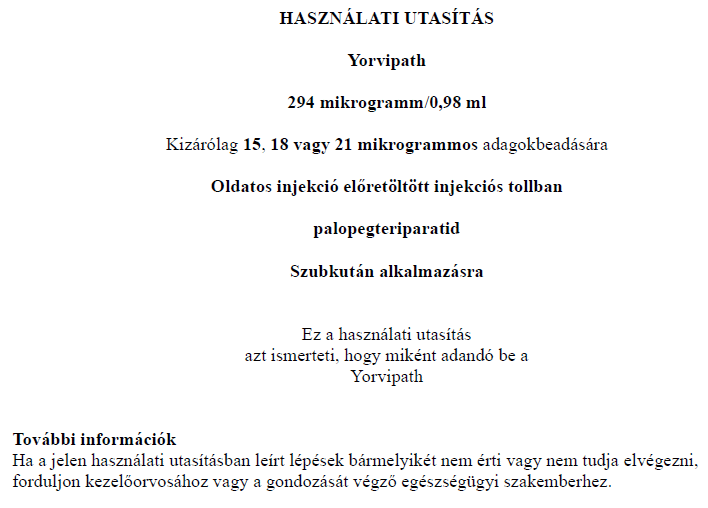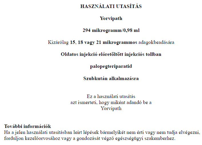 YORVIPATH 294 µg/0,98 ml oldatos injekció előretöltött injekciós tollban