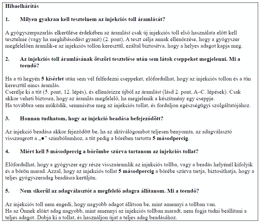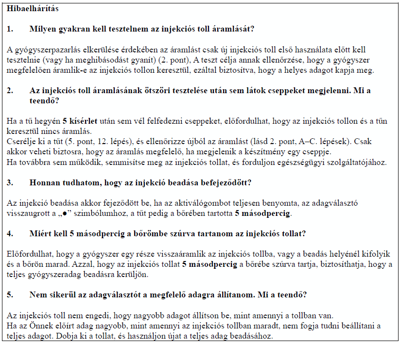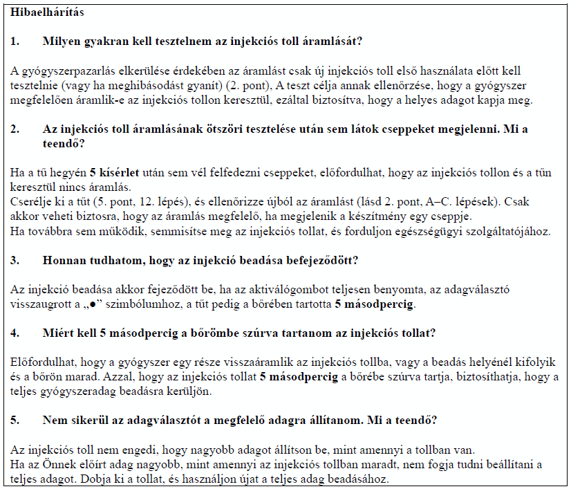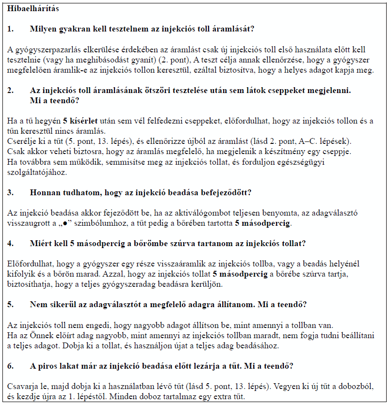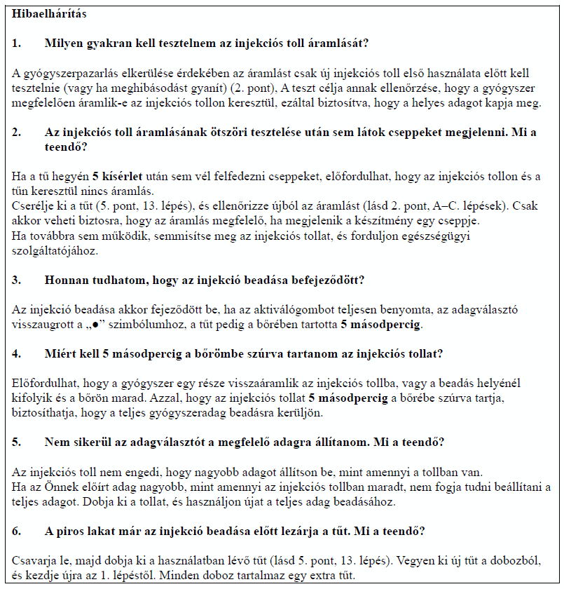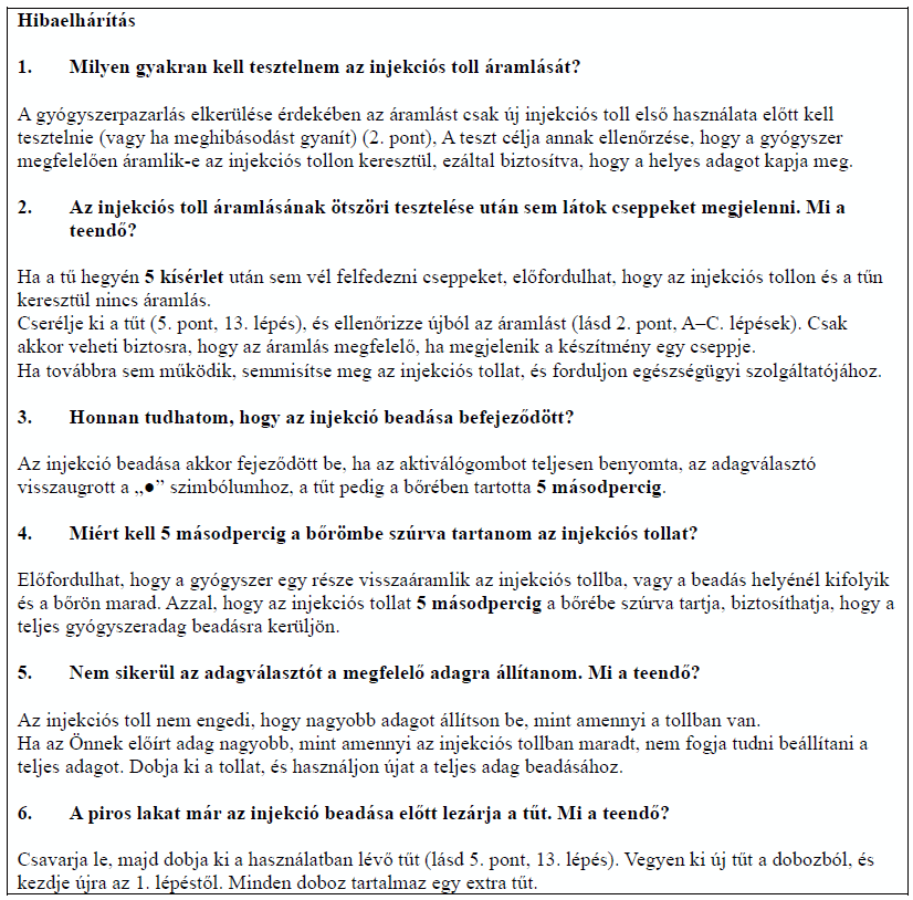 Az injekciós tollat mindig a használati utasításban leírtak szerint használja!