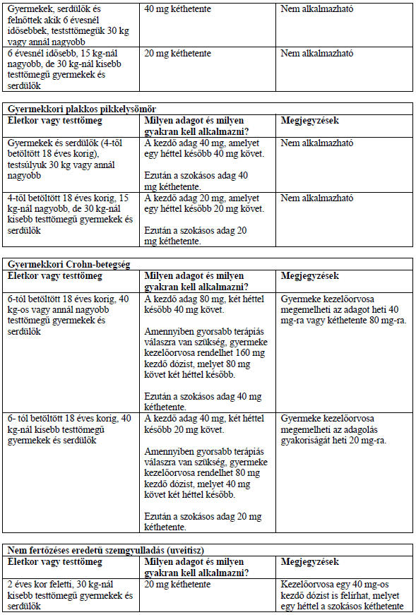 A Yuflyma alkalmazható továbbá súlyos plakkos pszoriázisban szenvedő, 4-től betöltött 18 éves koráig gyermekeknél és serdülőknél, akiknél a helyi kezelés és a fényterápiák nem használtak, vagy nem alkalmazhatóak