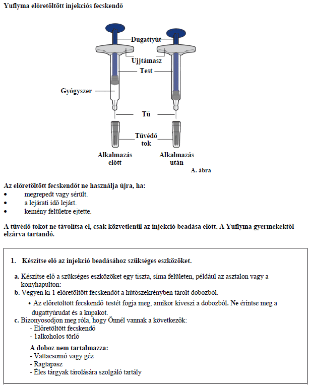 A Yuflyma előretöltött fecskendő egy adalimumab oldatot tartalmazó üvegfecskendő.