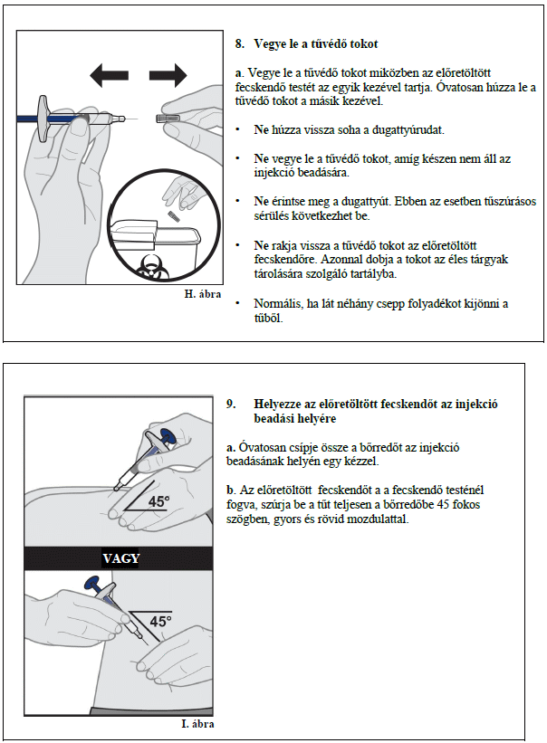 - Mindegyik előretöltött fecskendőt csak egy injekcióhoz szabad használni