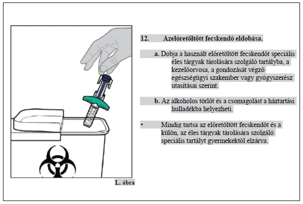 - Mindegyik előretöltött fecskendőt csak egy injekcióhoz szabad használni